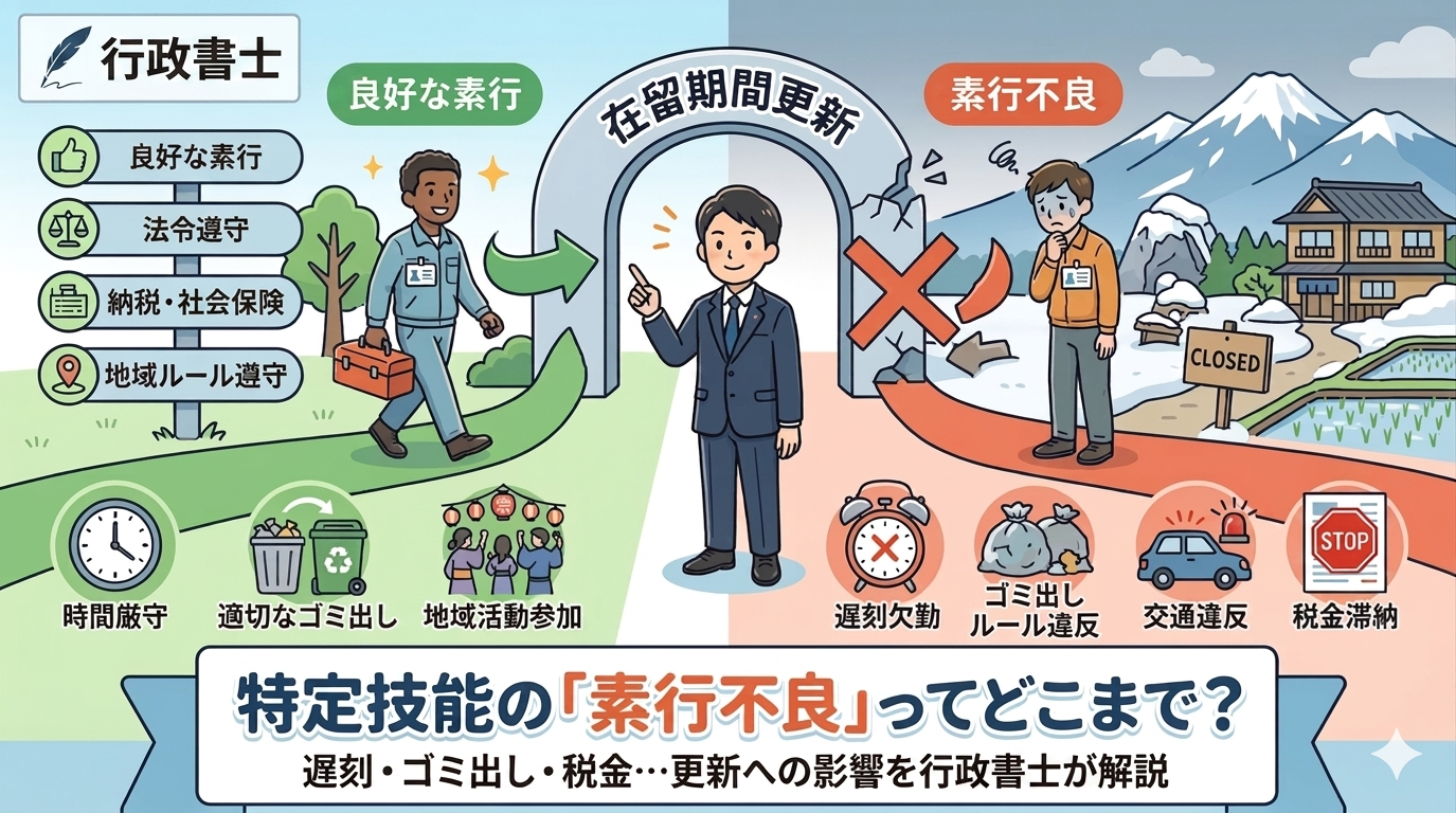 特定技能ビザの更新が危ない? 「素行不良」の実務的判断基準を行政書士が徹底解説【2026年最新版】